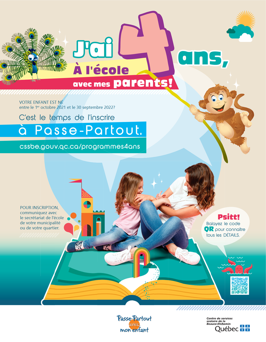 La période d’inscription pour le programme Passe-Partout est du 2 au 13 février 2026. Pour procéder à l’inscription de lvotre enfant, il y a deux façons de faire : en appelant au secrétariat de l’école Bellarmin au 418-228-5541 poste 11200 OU en complétant une demande d’inscription en ligne via la Portail Parents.