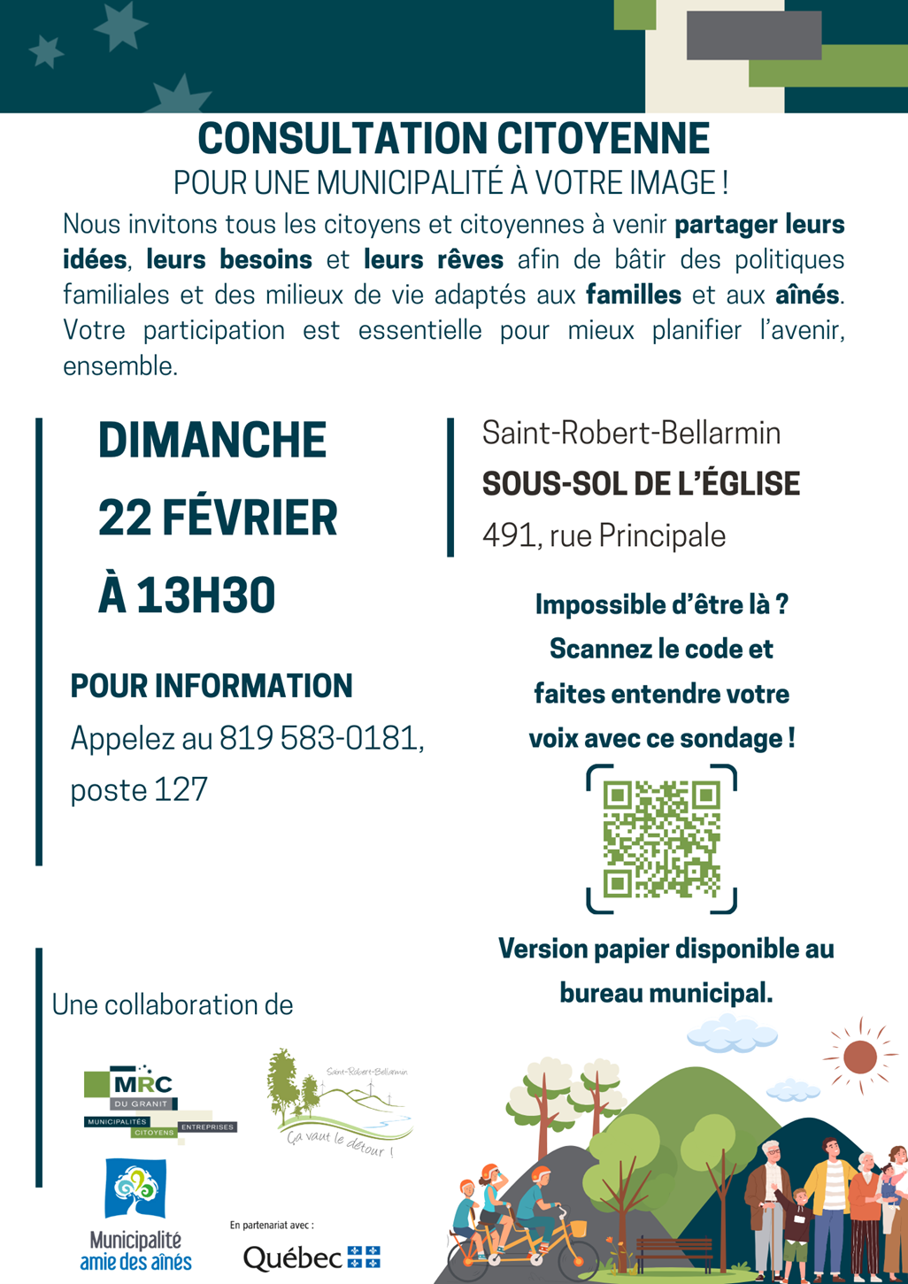 SONDAGE - FAMILLE et AÌNÉS - Consultation publique 22 février à 13h30 Veuillez remplir le sondage dès maintenant en cliquant ici Partarger :