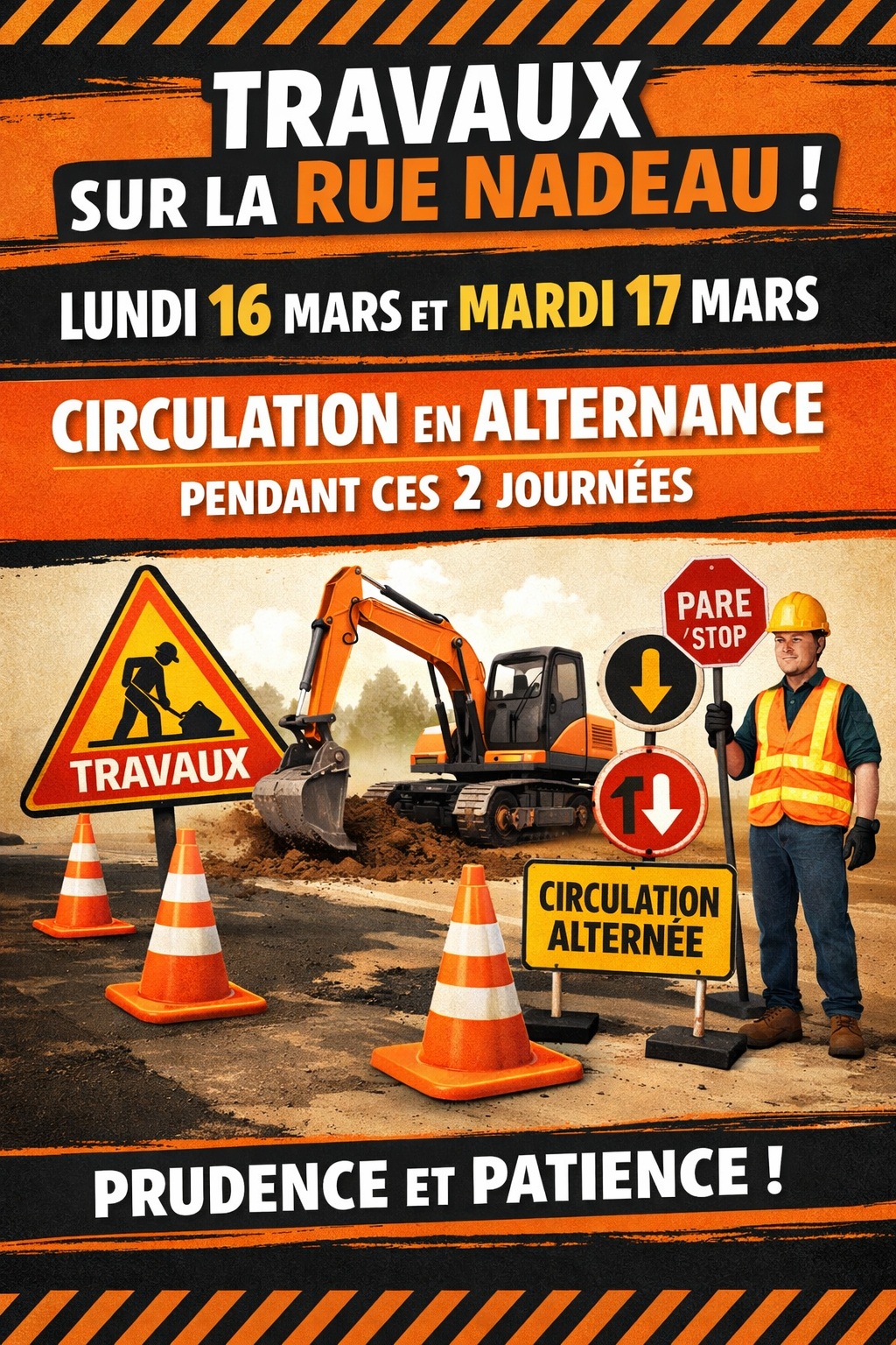 TRAVAUX RUE NADEAU - CIRCULATION EN ALTERNANCE